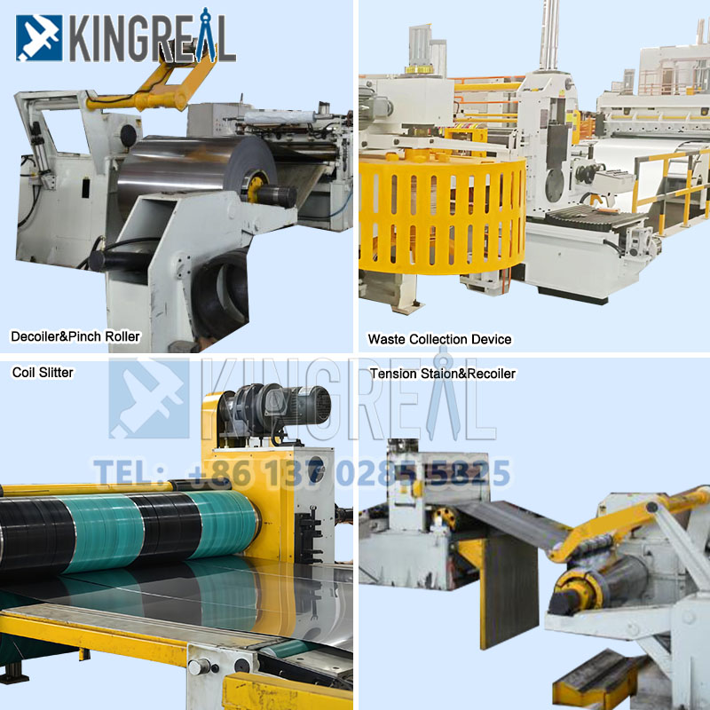 కింగ్రెయల్ స్లిట్టర్ స్టెయిన్లెస్ స్టీల్ స్లిటింగ్ లైన్ ప్రధానమైనది డెకాయిలర్, స్టీల్ స్లిటింగ్ మెషిన్ మరియు రివైండర్. అదే సమయంలో, స్టెయిన్లెస్ స్టీల్ యొక్క లక్షణాల ప్రకారం వేర్వేరు భాగాలు రూపొందించబడ్డాయి.